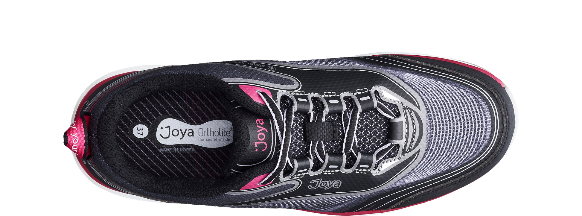 Dynamischer Schnürschuh mit atmungsaktivem Mesh-Obermaterial, unterstützt durch laminierte Druckdetails und eine synthetische Fersenkappe. Die Joya Curve Sohlentechnologie unterstützt die natürliche Abrollbewegung und fördert das aktive Gehen. Sie zwingt den Träger zu vermehrtem Balancieren, um das Gleichgewicht zu halten, stärkt so die Muskulatur und fördert eine gesündere Haltung und entlastet Rücken und Gelenke.