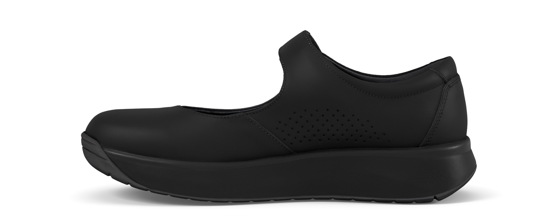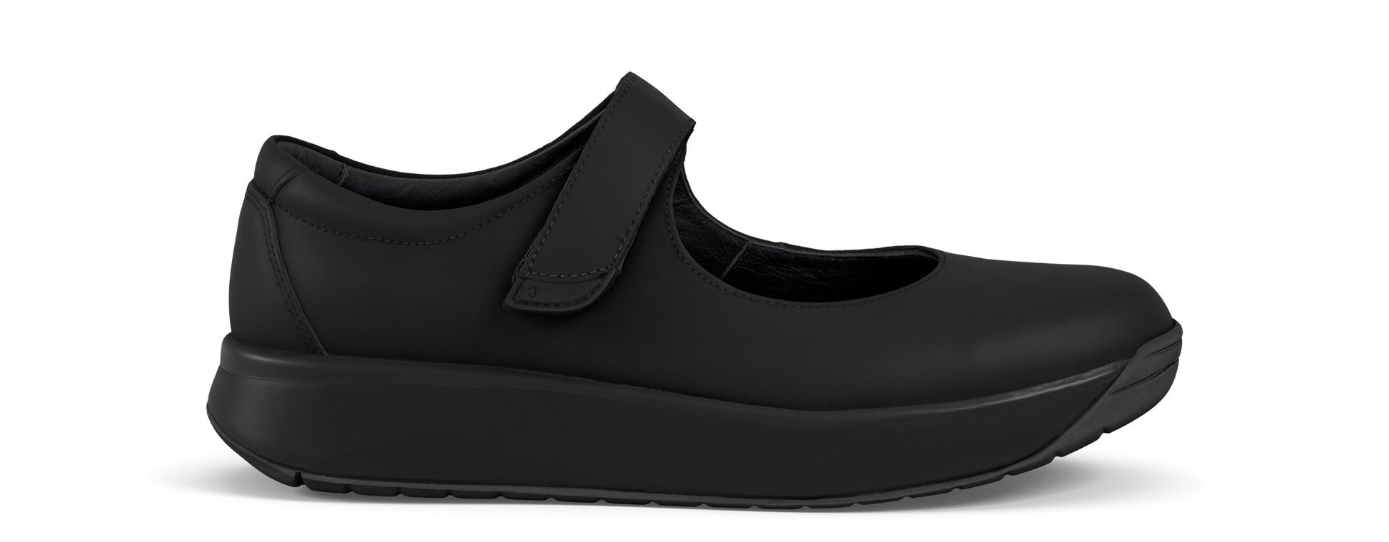 Contemporary and minimalist mary-jane with velcro instep strap for adjustable fit. Elegant full grain leather upper and leather lining for uncompromised comfort and style. Featured with the Joya Senso sole technology that ensures excellent cushioning effect and balanced pressure distribution, delivering optimum comfort and relief for your back muscles, joints and feet daily stress.