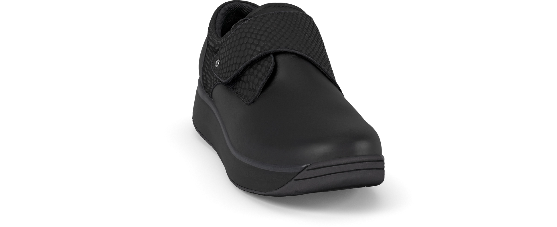 Soft touch leather shoe with sophisticated snake embossed details, velcro closure and streatchable lining to avoid pressure points on your feet for a 360 degrees comfort feeling. Featured with the Joya Senso sole technology that ensures excellent cushioning effect and balanced pressure distribution, and delivers optimum comfort and relief for your back muscles, joints and feet daily stress.