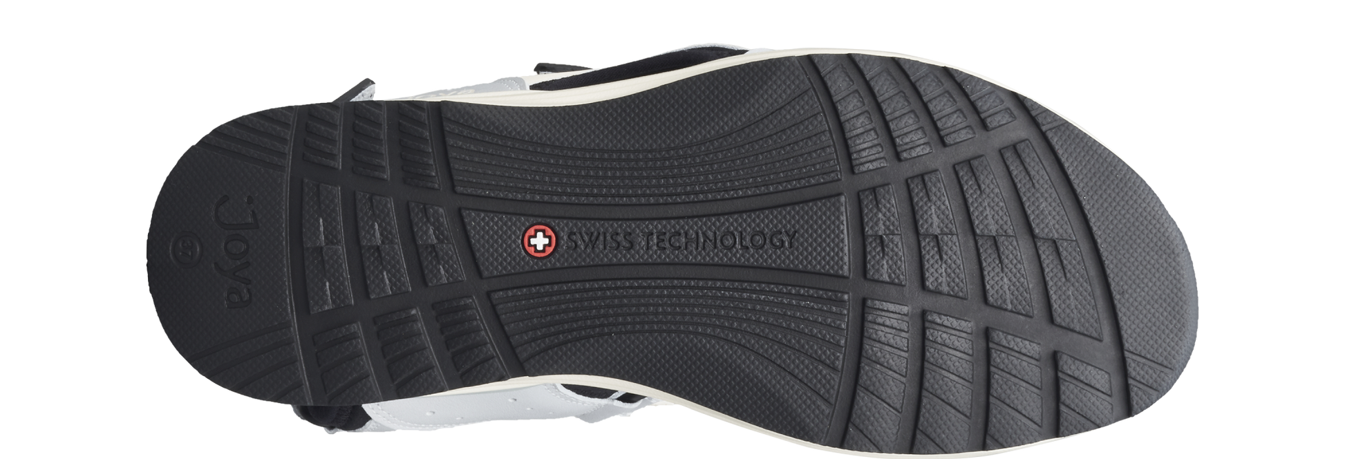 Outdoorsandale aus Leder und Mesh mit rutschfester Sohle. Weich gepolstertes Neoprenfutter und verstellbare Klettverschlüsse an Ferse, Rist und Vorfuß. Ausgestattet mit einem ergonomischen Fußbett, das mit weicher, samtiger Mikrofaser umhüllt ist. Basierend auf der Joya Active Sohlentechnologie, die eine ideale Kombination aus Dämpfung, Rückprall und Stabilität garantiert. Für dynamische Menschen, die Komfort in Bewegung und Leistung auf jedem Untergrund brauchen.