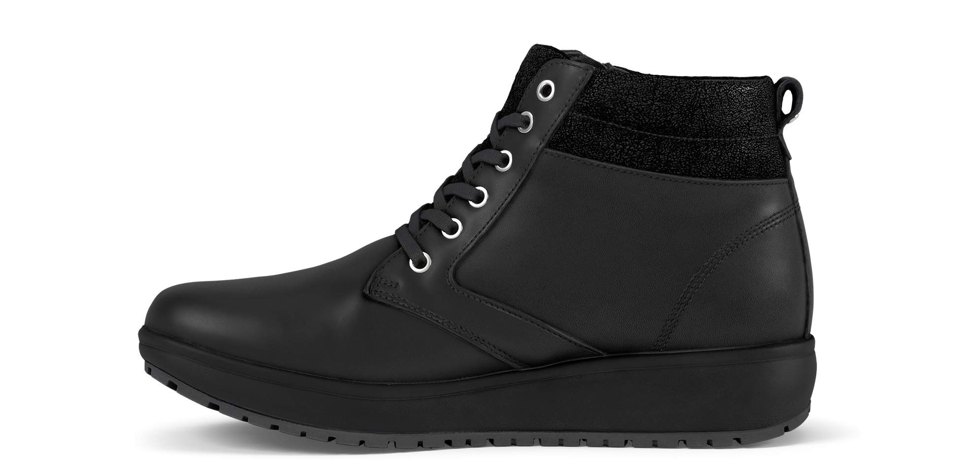 Bota elegante con cordones y cremallera para facilitar el acceso. Parte superior de cuero suave de plena flor con cuello acolchado de ante brillante y cómodo. Forro de piel y textil. Mejorado con la tecnología de suela Joya Senso con un efecto de amortiguación único, que proporciona un alivio óptimo para los músculos y articulaciones de la espalda.