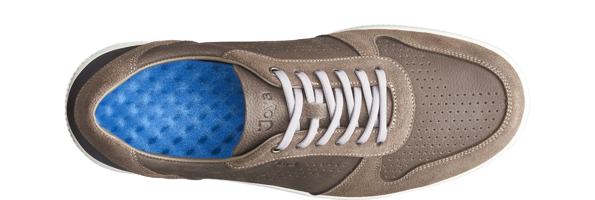 Zapatilla deportiva contemporánea para una movilidad relajada, con parte superior de nubuck suave y resistente y cuero de velour con elegantes detalles de color. La sensación de bienestar se ve potenciada por la plantilla ondulada Ortholite Nuvola Foam que proporciona una sensación de uso incomparablemente agradable. Rematada con la extraordinaria tecnología de suela Joya Nuvola, que comprende una entresuela suave y elástica más una suela exterior de goma ligera.