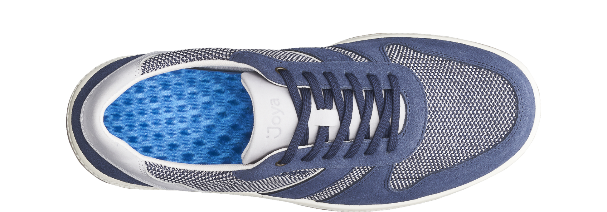 Zapatilla contemporánea para una movilidad relajada, con parte superior de cuero aterciopelado y tela suave y robusta. La sensación de bienestar se ve reforzada por la plantilla ondulada de espuma Ortholite Nuvola, que proporciona una sensación de uso incomparablemente agradable. Rematado con la extraordinaria tecnología de suela Joya Nuvola, que comprende una entresuela suave y elástica más una suela de goma liviana.