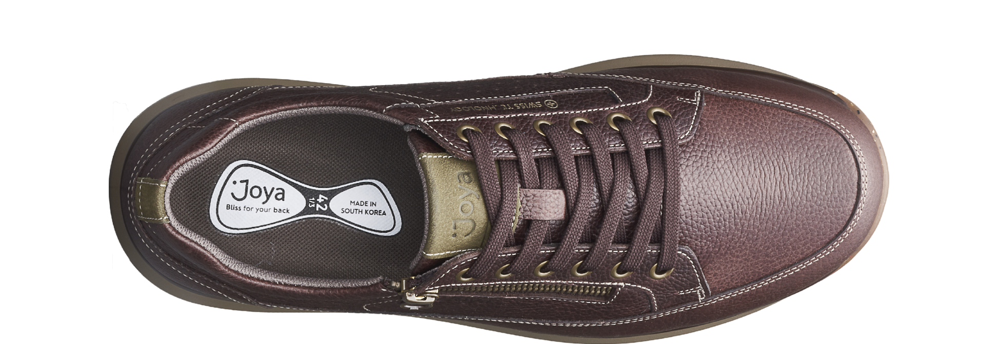 Chaussures à lacets en cuir pleine fleur avec fermeture éclair supplémentaire pour un enfilage facile et doublure en mesh respirant. Dotées de la technologie de semelle Joya Senso, elles assurent un excellent amorti et une répartition équilibrée de la pression, pour un confort optimal et un soulagement des tensions quotidiennes des muscles du dos, des articulations et des pieds.