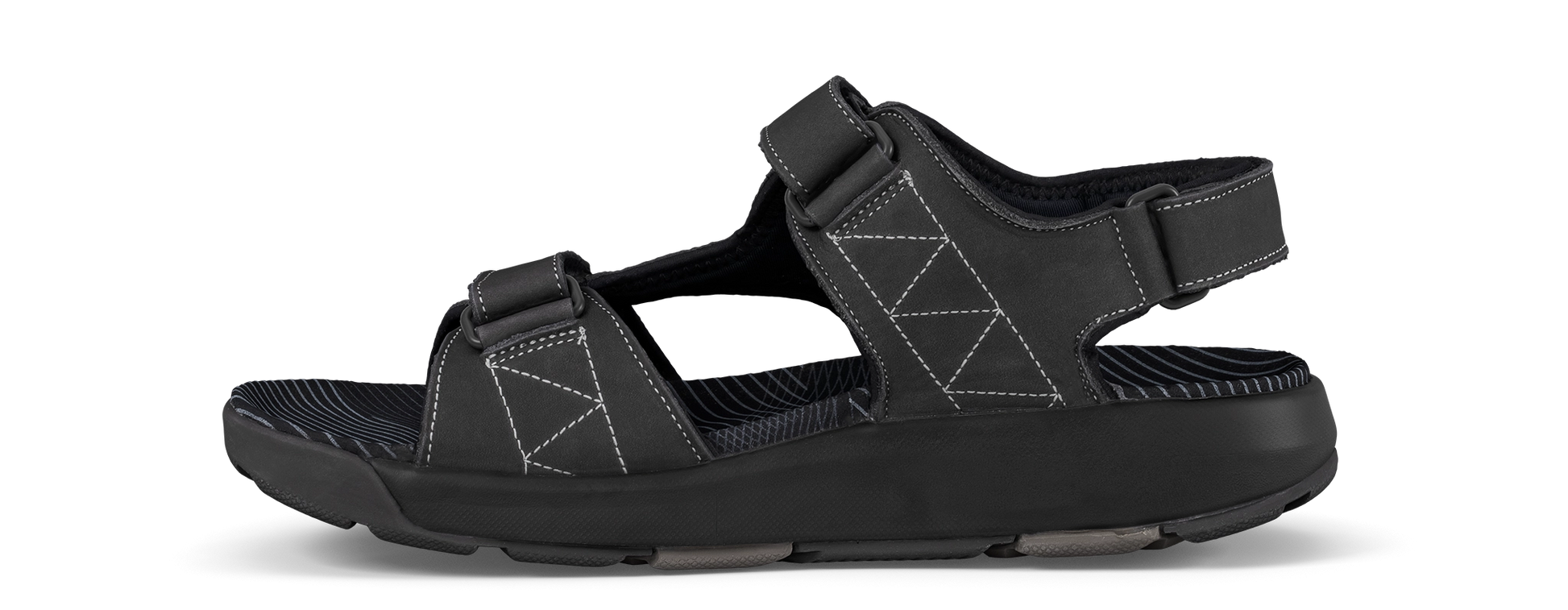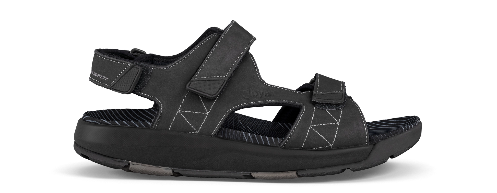 Elegante sandalo da esterno in pelle nabuk con fodera in neoprene morbidamente imbottita e cinturini regolabili in velcro su tallone, collo del piede e avampiede. Dotato di un plantare ergonomico rivestito in morbida microfibra. Dotata della tecnologia Joya Active, la suola garantisce una combinazione ideale di ammortizzazione, ritorno di energia e stabilità. Per persone dinamiche e sempre in movimento, che cercano comfort in azione e prestazioni elevate su ogni superficie.