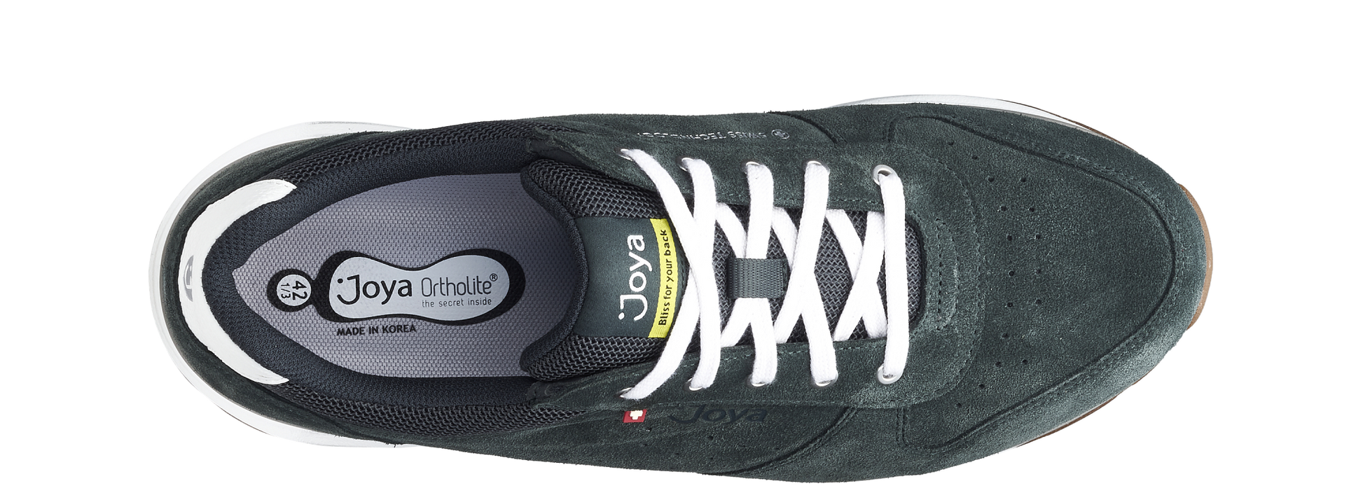 Sneakers aus weichem Veloursleder. Hat eine vordere Schnürung und ein Textilfutter. Die Joya Active Sohle bietet eine ideale Kombination aus Weichheit und Stabilität. Geeignet für Menschen mit aktivem Lebensstil bei der Arbeit und in der Freizeit, wenn körperliche Erleichterung beim Gehen wichtig ist. Geeignet für Menschen mit einem empfindlichen Rücken und mit Füßen und Gelenken, die täglichem Stress ausgesetzt sind.