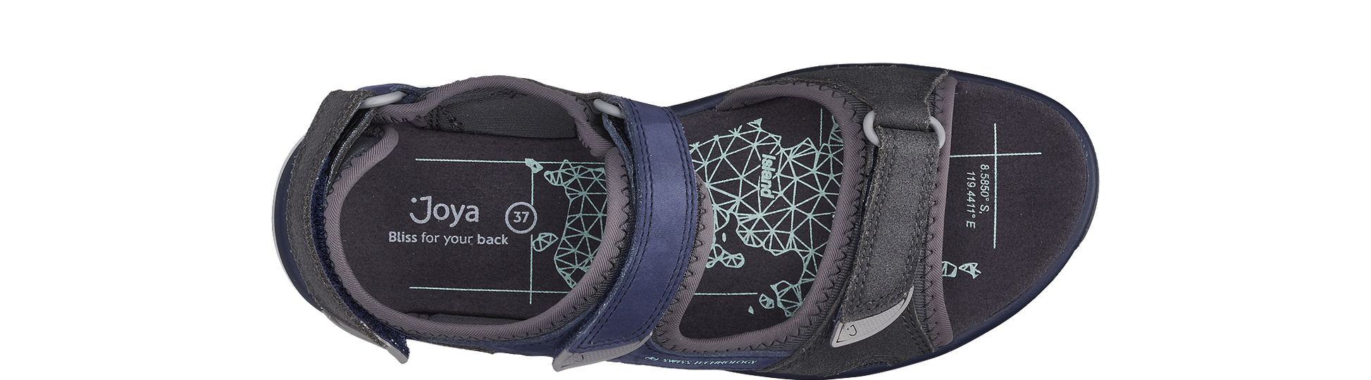 Sportliche Sandale aus Nubuk und gewachstem Wildleder. Mit weich gepolstertem Neoprenfutter und verstellbaren Trägern an Ferse, Rist und Vorfuß. Das Fußbett hat eine normale Breite und ist mit weichem Mikrofasermaterial bezogen. Die Joya Active Sohle bietet eine ideale Kombination aus Weichheit und Stabilität. Geeignet für Menschen mit aktivem Lebensstil bei der Arbeit und in der Freizeit, wenn körperliche Erleichterung beim Gehen wichtig ist, sowie für Menschen mit einem empfindlichen Rücken, Füssen und Gelenken, die täglichem Belastung ausgesetzt sind.